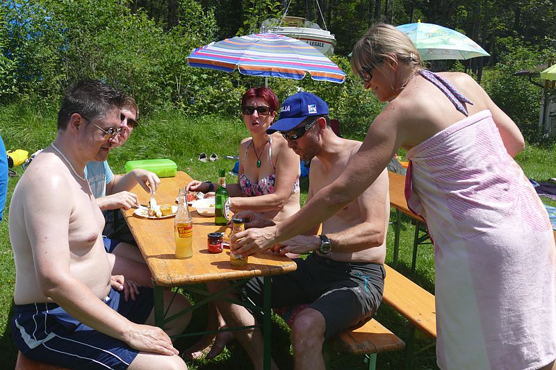 Aber auch die Jantar wurde eifrig genützt – einmal sogar zu eifrig. Die Crew hatte anscheinend jegliches Zeitgefühl verloren oder war in der sengenden Hitze dem Trugschluss erlegen, das Boot für den ganzen Tag gechartert zu haben. Aber das Wetter war einfach zu schön, um irgendjemandem wirklich böse zu sein. Dazu noch ein erfrischender Sprung in den 17gradigen Achensee und man hatte wieder einen kühlen Kopf.