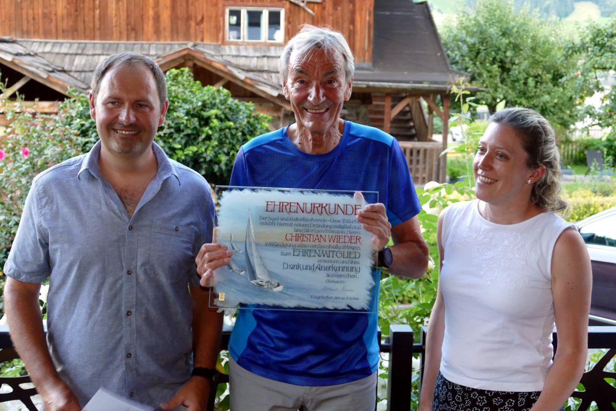 Am 26. 7. 2924 fand wieder das traditionelle Crew Grillen beim Hotel Neuwirt in Schwendau statt. Obmann Hannes Eberharter konnte an diesem herrlichen Sommerabend gut 30 Crewmitglieder begrüßen darunter auch zwei langjährige Mitglieder, die an diesem Abend zu Ehrenmitglieder ernannt wurden: Christian Wieder war maßgeblich an der Gründung des Vereins beteiligt und in der Folge natürlich auch Gründungsmitglied. Walter Buchberger war viele Jahr im Ausschuss tätig und hatte sich besonders im Bereich der Regatta engagiert, bis ihn eine schwere Krankheit das nicht mehr ermöglichte.
