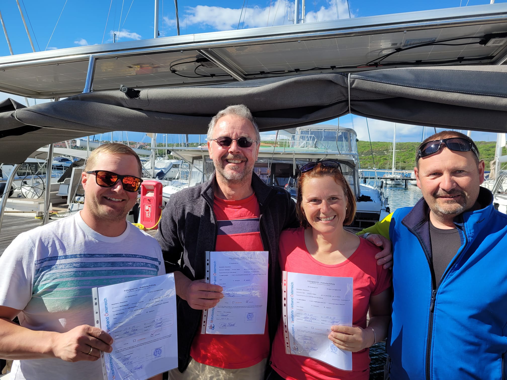 Vom 14. bis 19. 4. 2024 stellten 3 der Teilnehmer des letzten FB2 Kurses ihre praktischen Kenntnisse unter Beweis, nachdem sie im letzten Jahr bereits erfolgreich die theoretische Prüfung absolviert hatten. Obmann Hannes, der bereits vor einiger Zeit einen Übungstörn mit den Prüflingen unternommen hatte, organisierte auch diesen Prüfungstörn vorbildlich. Alle Prüflinge lösten die praktischen Aufgaben ohne Probleme und so können wir nun zweineuen Skippern und einer neuen Skipperin sehr herzlich zu ihrem Erfolg gratulieren und uns bei Hannes für seinen unermüdlichen Einsatz bedanken.