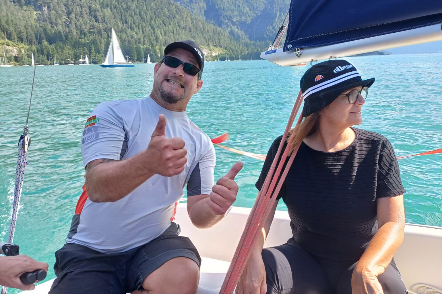 Derzeit finden am Achensee wieder die praktischen Übungen für die Prüfung zum A-Schein statt, nachdem in den vergangenen Wochen die theoretischen Grundlagen durchgemacht wurden. Unter der fachkundigen Leitung von Harry lernen und üben die Kursteilnehmerinnen alle notwendigen Handgriffe und Manöver um ein Segelboot sicher über jeden Binnensee steuern zu können. Alle haben sichtlich Spass. Auch nach dem Kurs sitzen wir gemütlich bei einem Bier zusammen. Wir, die Crew Zillertal freuen uns auf unsere 6 neuen Mitglieder.