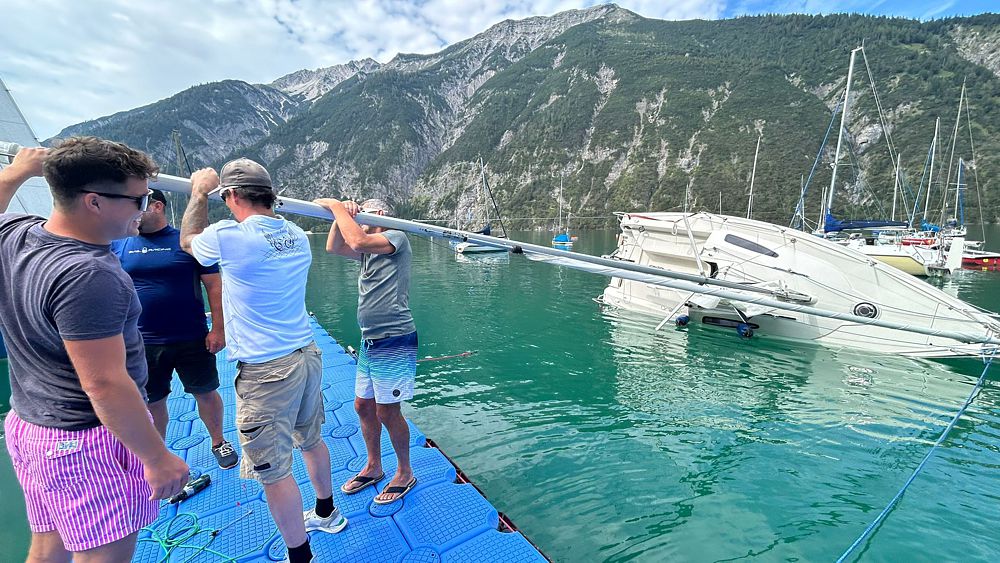 Die Lösung ist weniger spektakulär: Der Verklicker hatte heuer im Sommer schon einige Male Probleme, die richtige Windrichtung anzuzeigen und eines Tages war er überhaupt verschwunden. Achenseespezialist Harry gelang es mit dieser gut geplanten Aktion einen neuen Verklicker am Mast zu befestigen, ohne diesen ganz abbauen zu müssen.